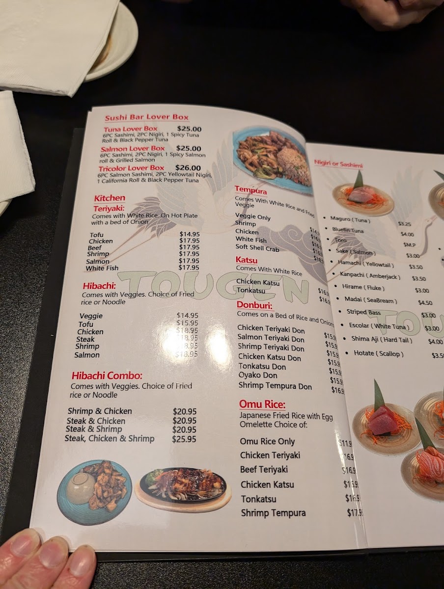 Chef's choice, 4 piece nigiri, 4 types of sashimi, and 1 roll.